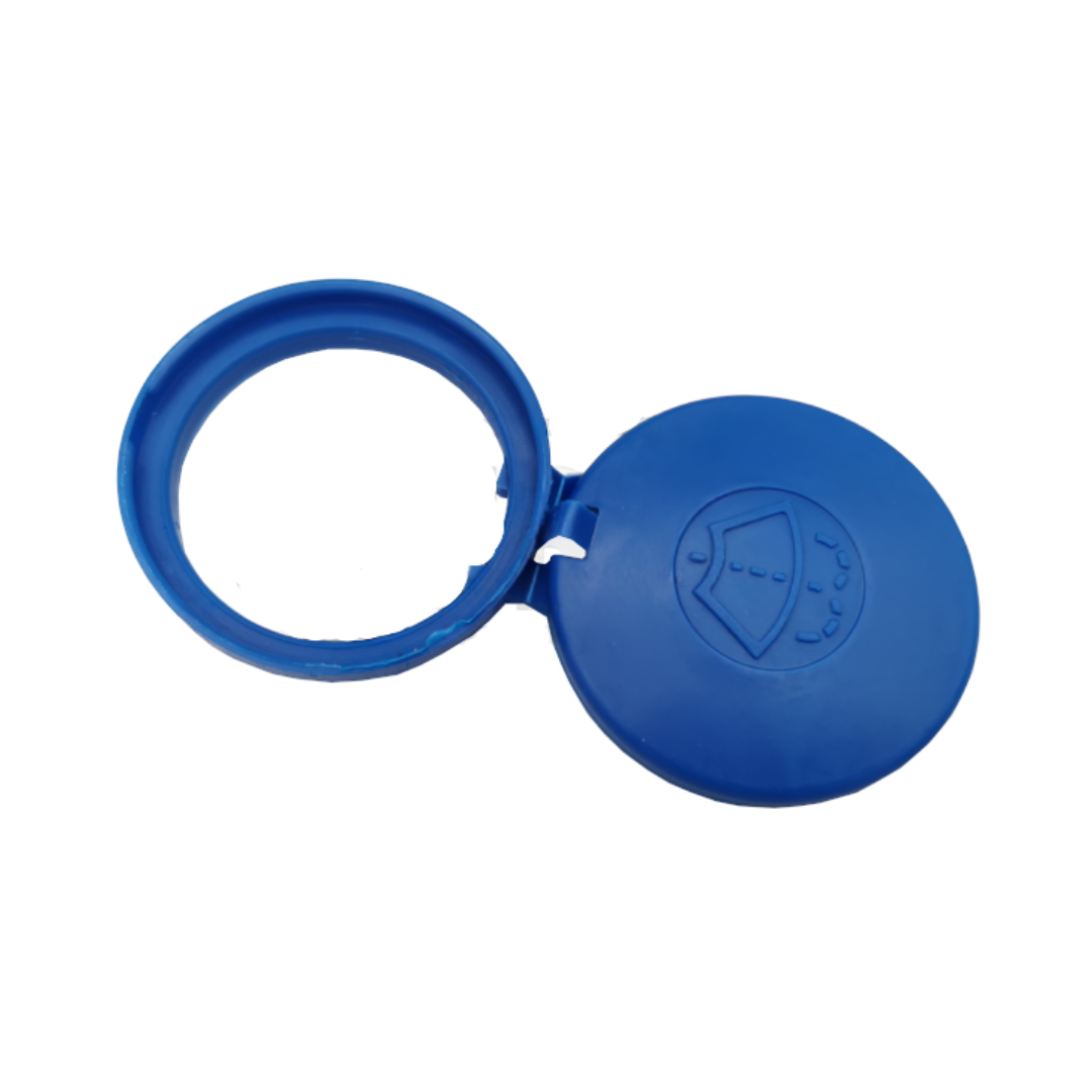Bouchon en plastique bleu résistant, conçu pour remplacer le couvercle du réservoir de liquide lave-glace sur une large gamme de véhicules Peugeot, Citroën et DS. Grâce à sa conception universelle et son anneau de fixation souple, il garantit un maintien sûr et une étanchéité optimale.
