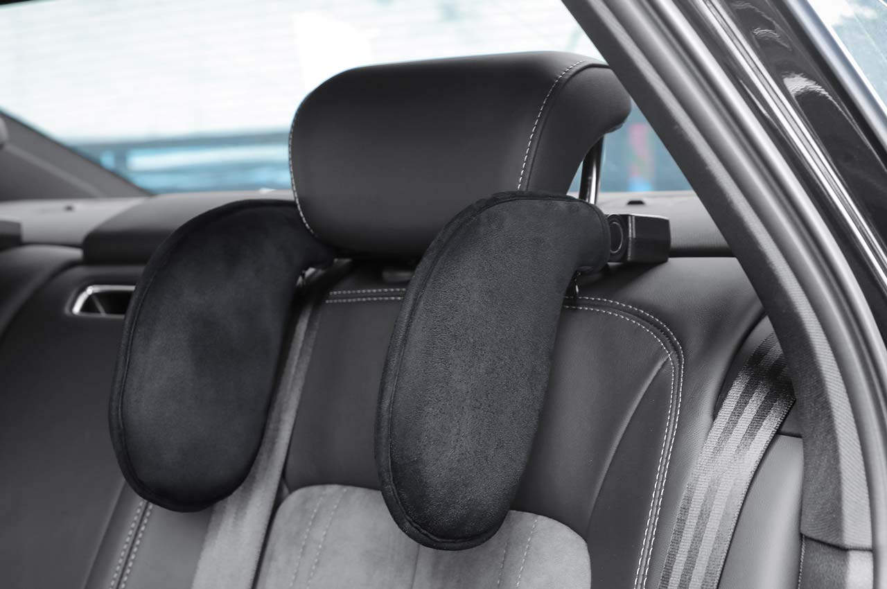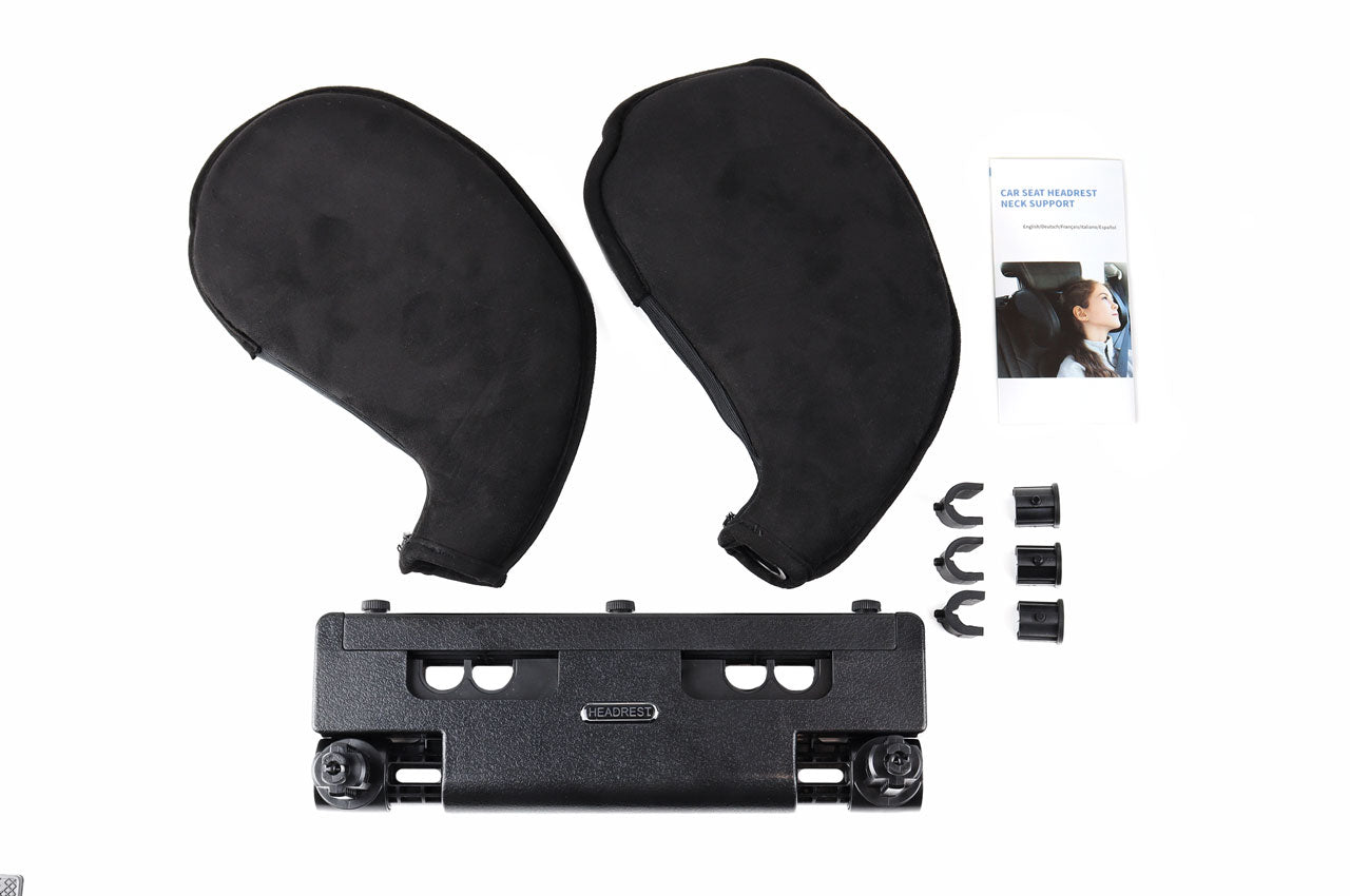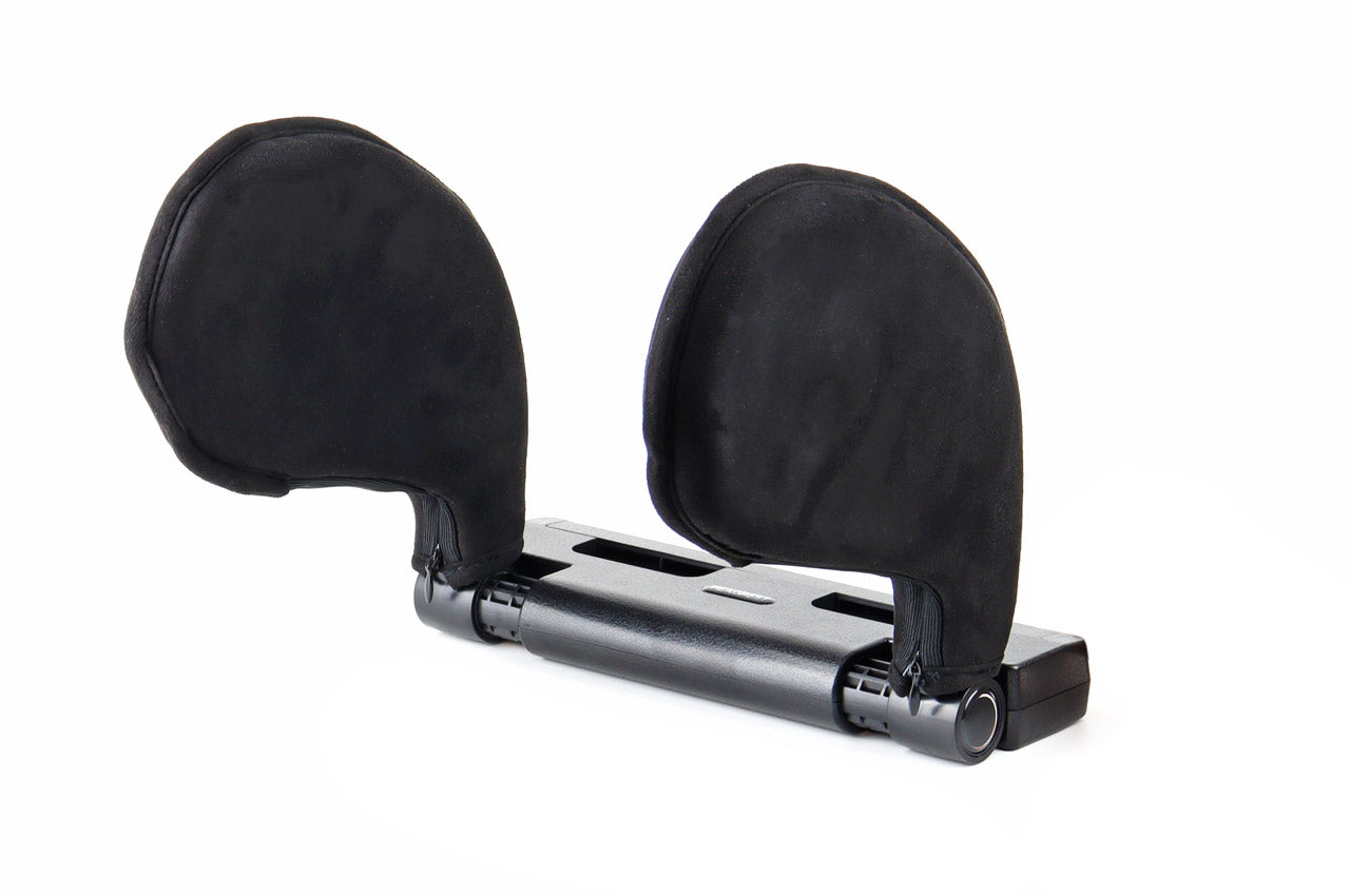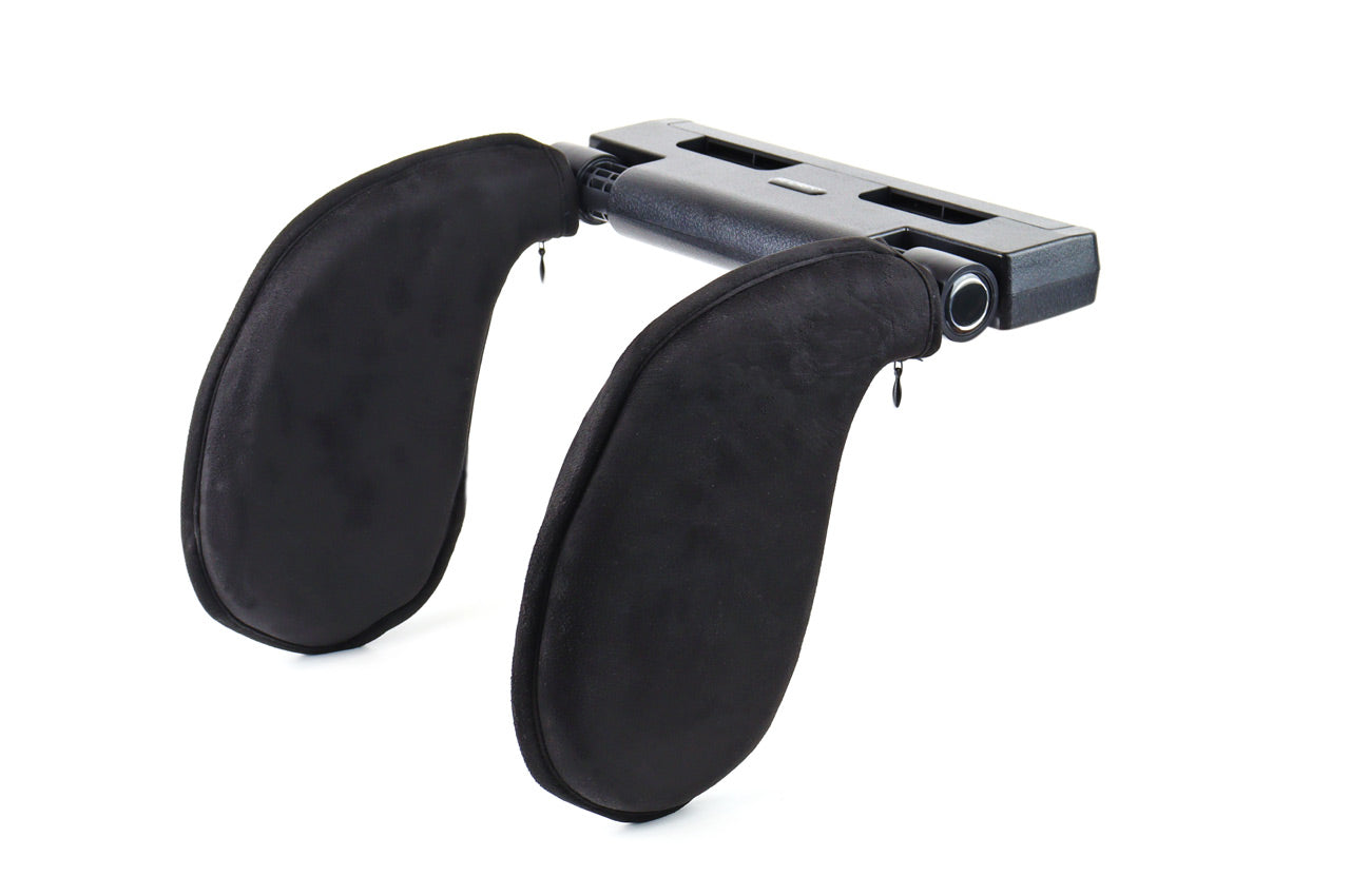 Monté directement sur les barres de l’appui-tête du siège, il offre un soutien latéral réglable pour éviter les positions inconfortables et soulager la nuque.