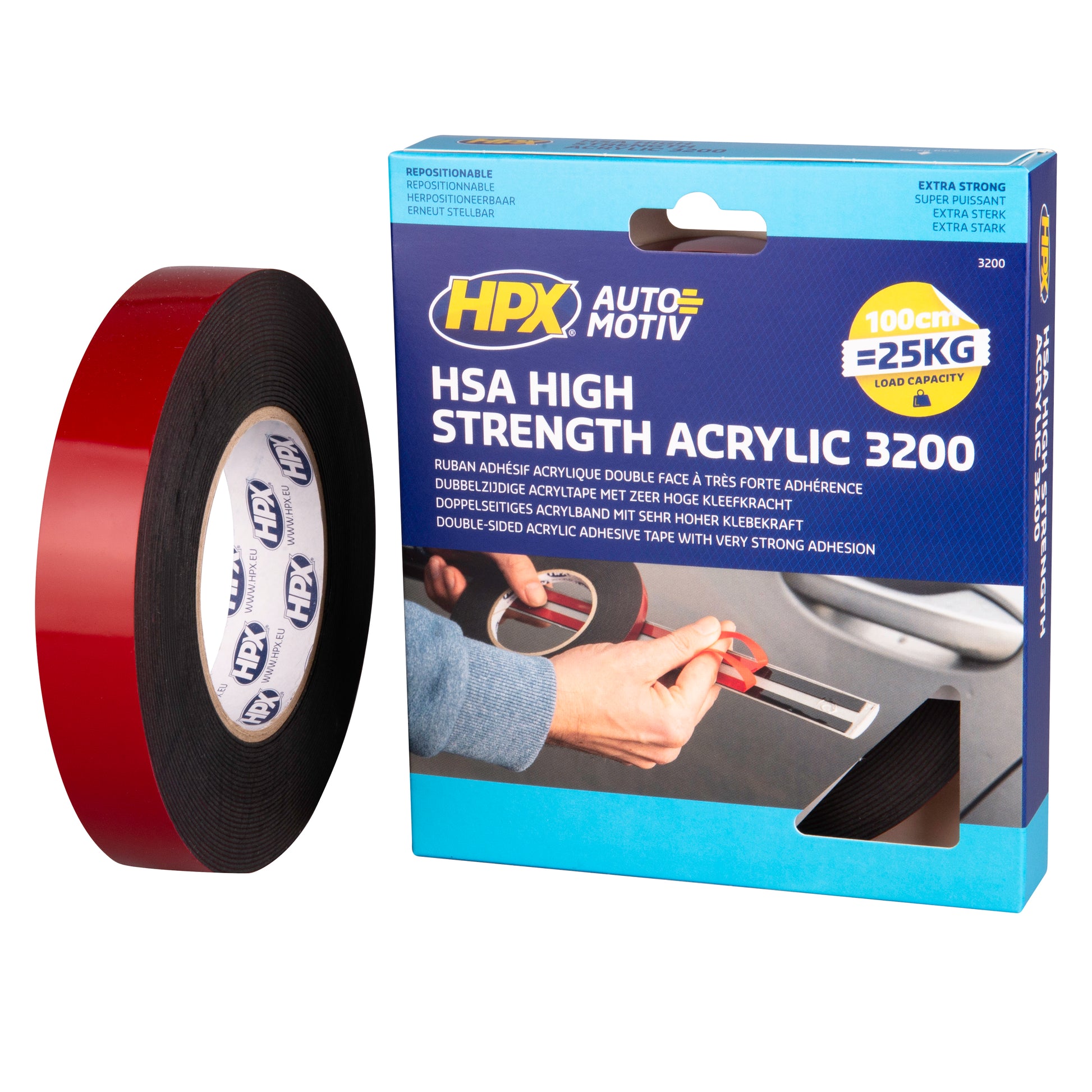 Le ruban adhésif double face HSA est conçu pour offrir une adhérence extrême sur divers matériaux. Idéal pour la fixation de baguettes, moulures lourdes, emblèmes et pièces de renforcement, il remplace efficacement les vis, rivets, soudures et colles liquides, assurant une fixation propre et durable.