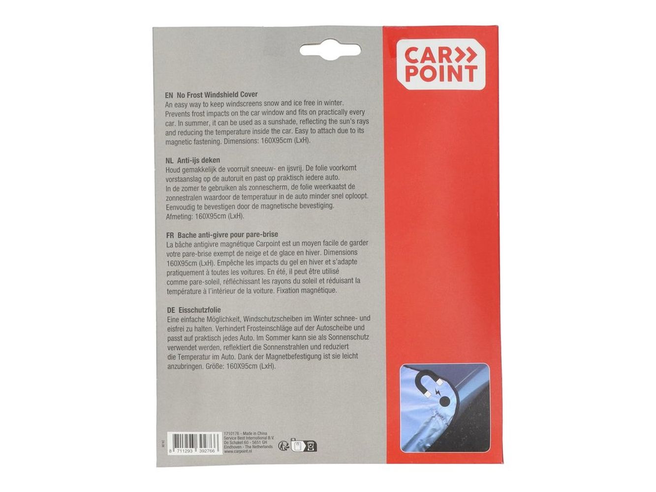 La bâche Carpoint No Frost est la solution idéale pour protéger votre pare-brise en toutes saisons. Pratique et polyvalente, elle empêche le givre, la neige ou la glace de se former en hiver, et réfléchit les rayons du soleil en été pour maintenir l’habitacle frais. Grâce à son système de fixation magnétique, elle est facile à poser et reste parfaitement en place.